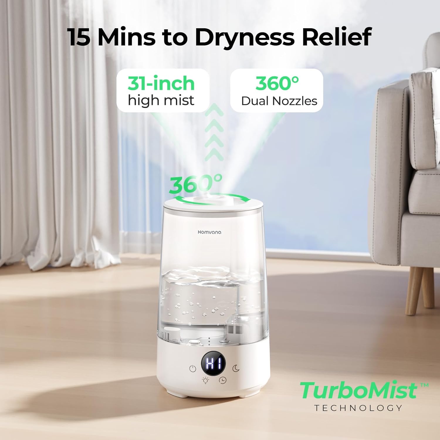 The Homvana 3-in-1 Humidifier combines a cool mist humidifier, aromatherapy diffuser, and color mood light — perfect for bedrooms, nurseries, offices, and even plant care!