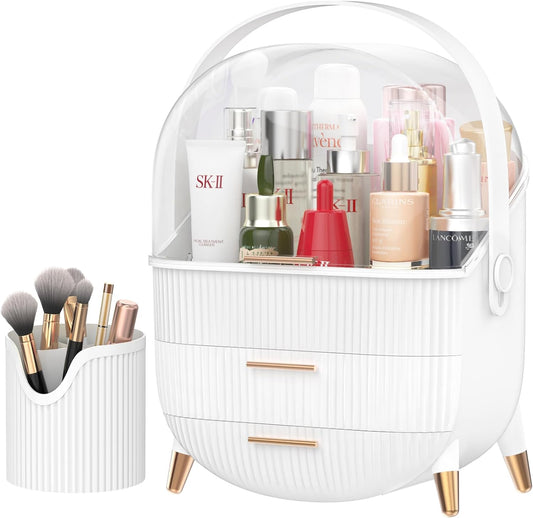 Forthee Makeup Organizer – 2 Drawers, Dustproof Skincare Storage Case (White)
